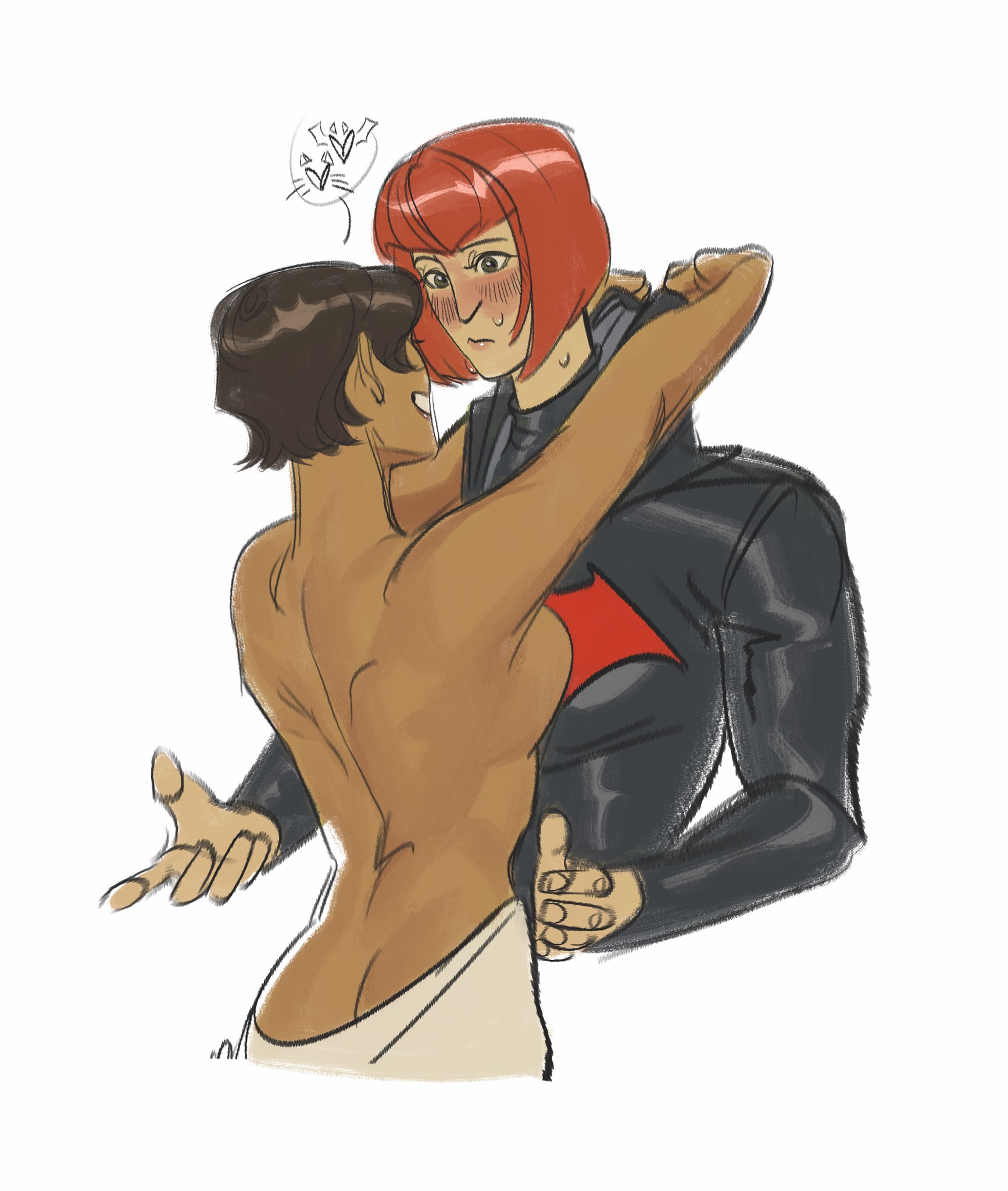 I've been waiting for someone to do it, but I may just have to do it myself. They do a lot of arm and shoulder touching in the movie, I think they're very cute.