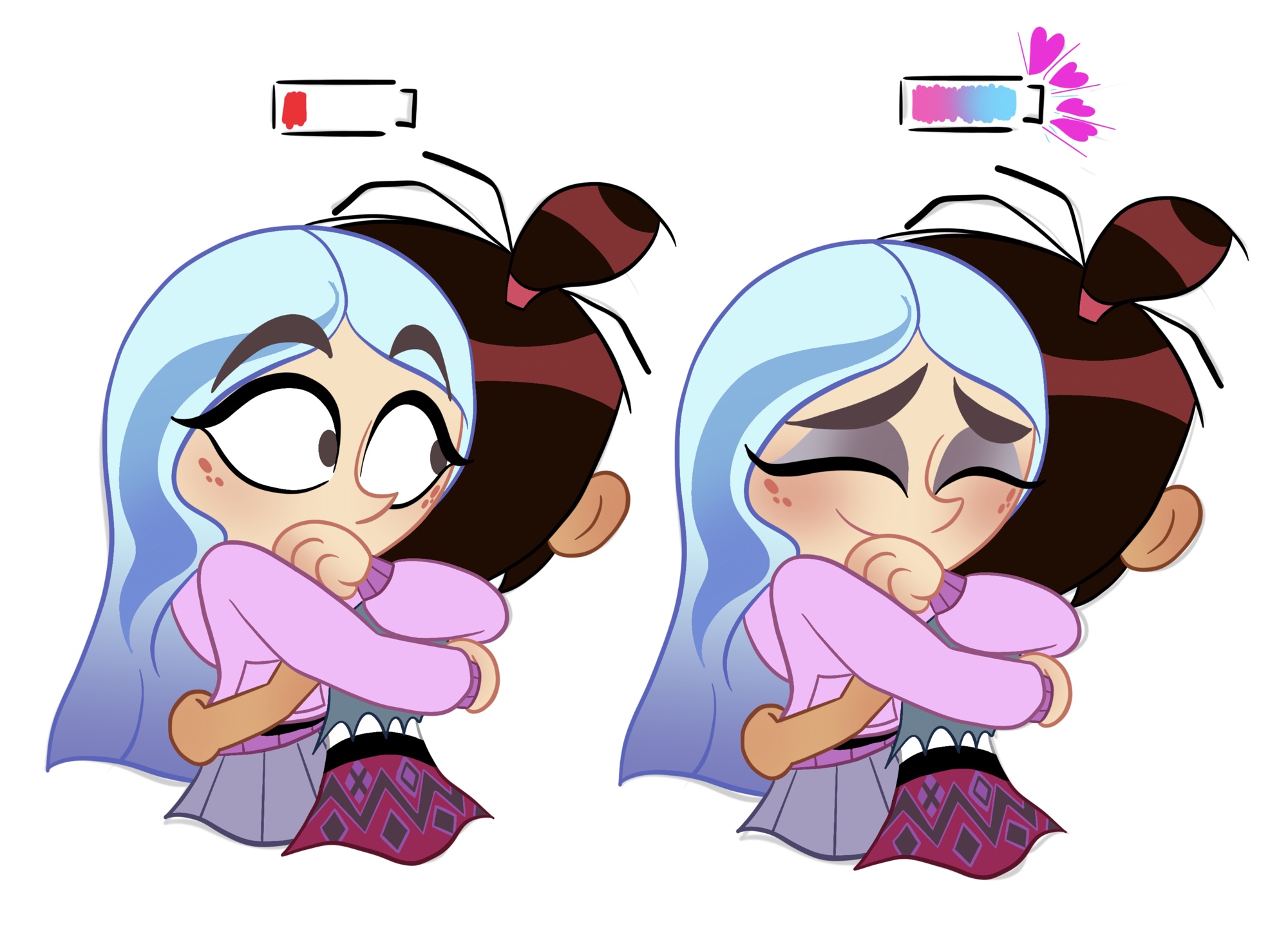 Zooble and Gangle shared a comforting hug.