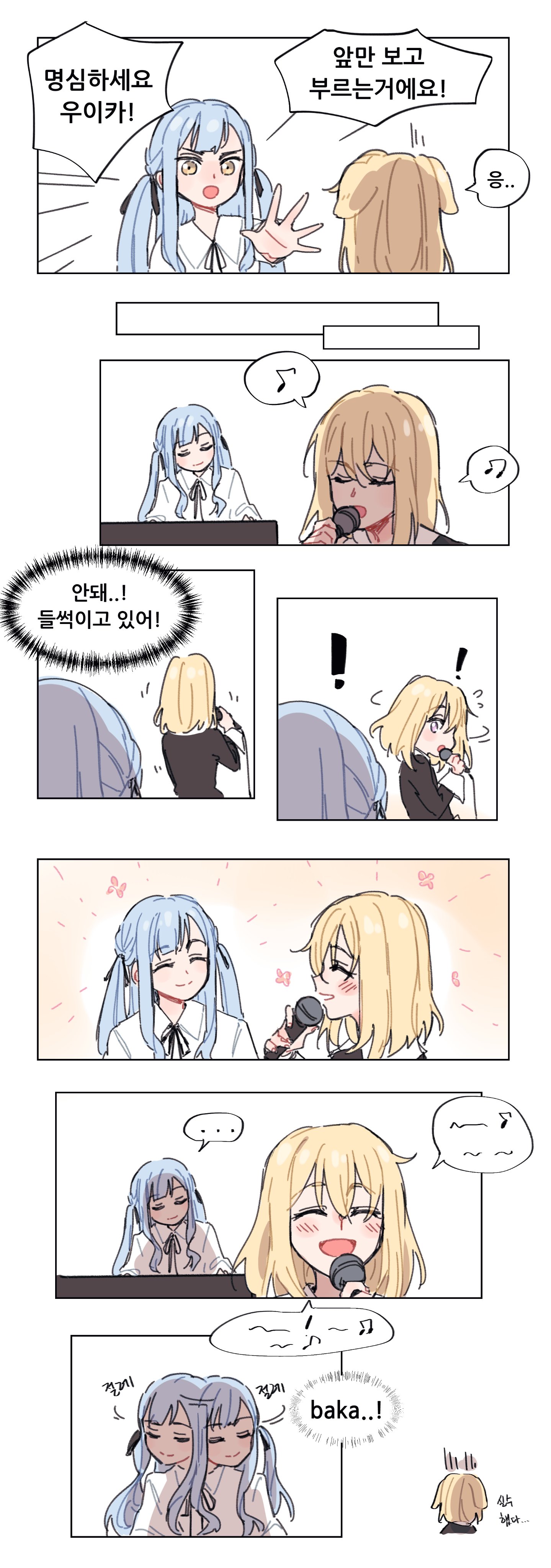 Ikka Dumb Rock and millsage came out with their first songs. Ikka Dumb Rock sounds like a punk band on meth, very hyperactive and noisy. I like how they have a whole bunch of singers. millsage sounds like what Morfonica might sound like with a keyboardist instead of a violinist. It's smooth and very keyboard-focused, and the singer's voice is gorgeous. I kept replaying the song just to listen to her voice. I already feel like I'm going to go nuts over millsage when the new game comes out.