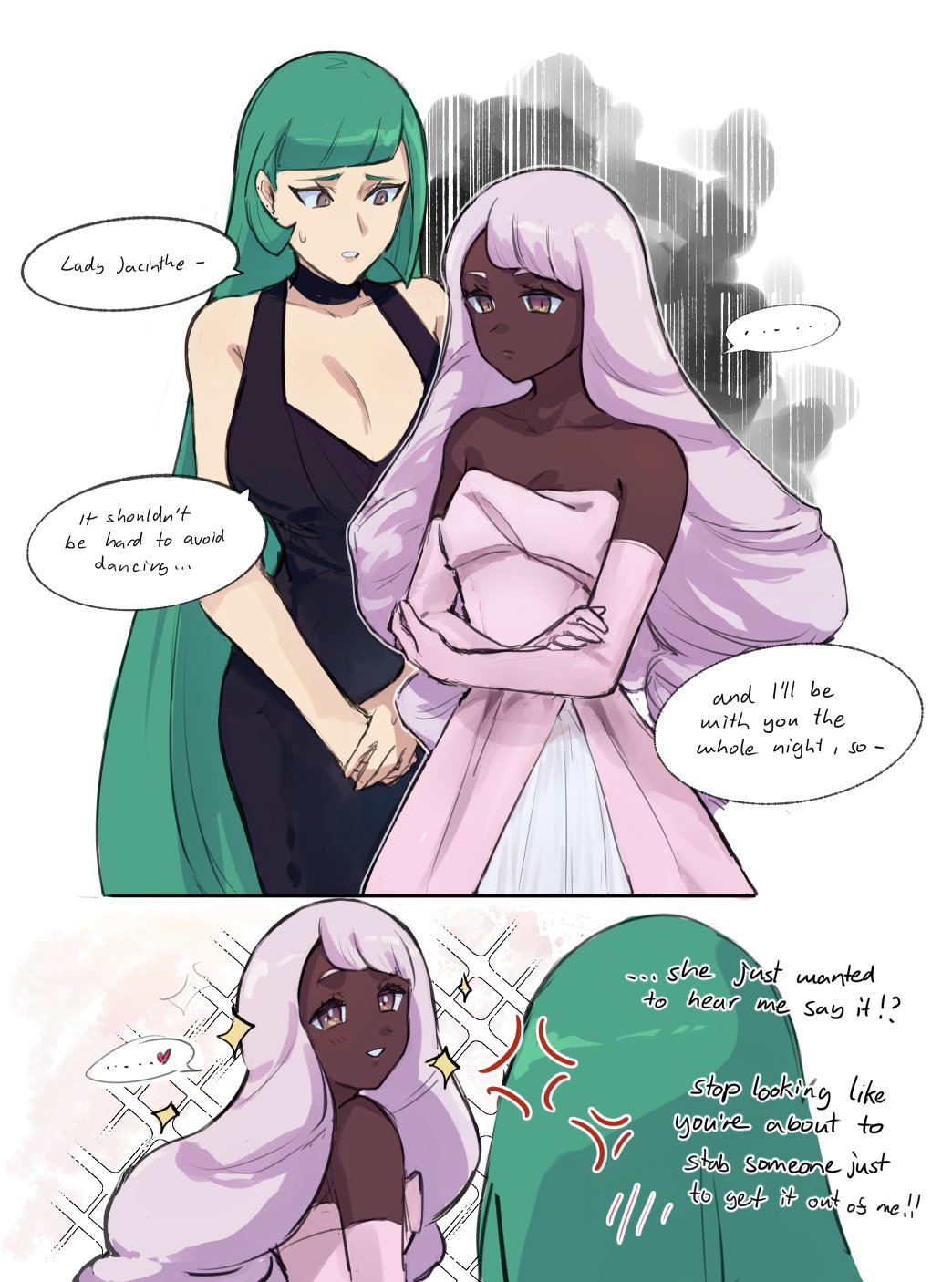 Interesting that this is like the first time I've seen Marcia, the same NPC that wanted Lebanne to become her partner, under a Jacinthe x Lebanne piece.