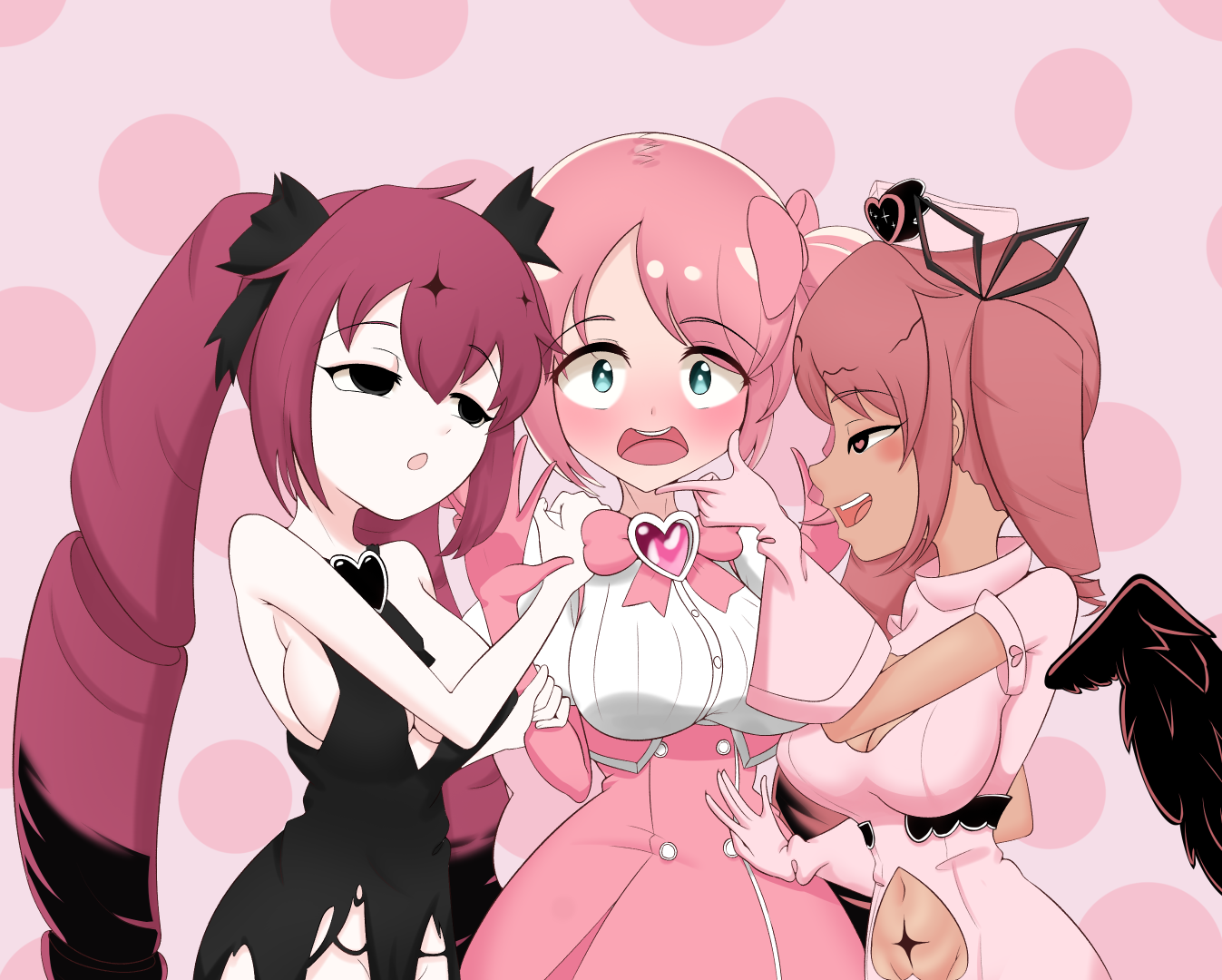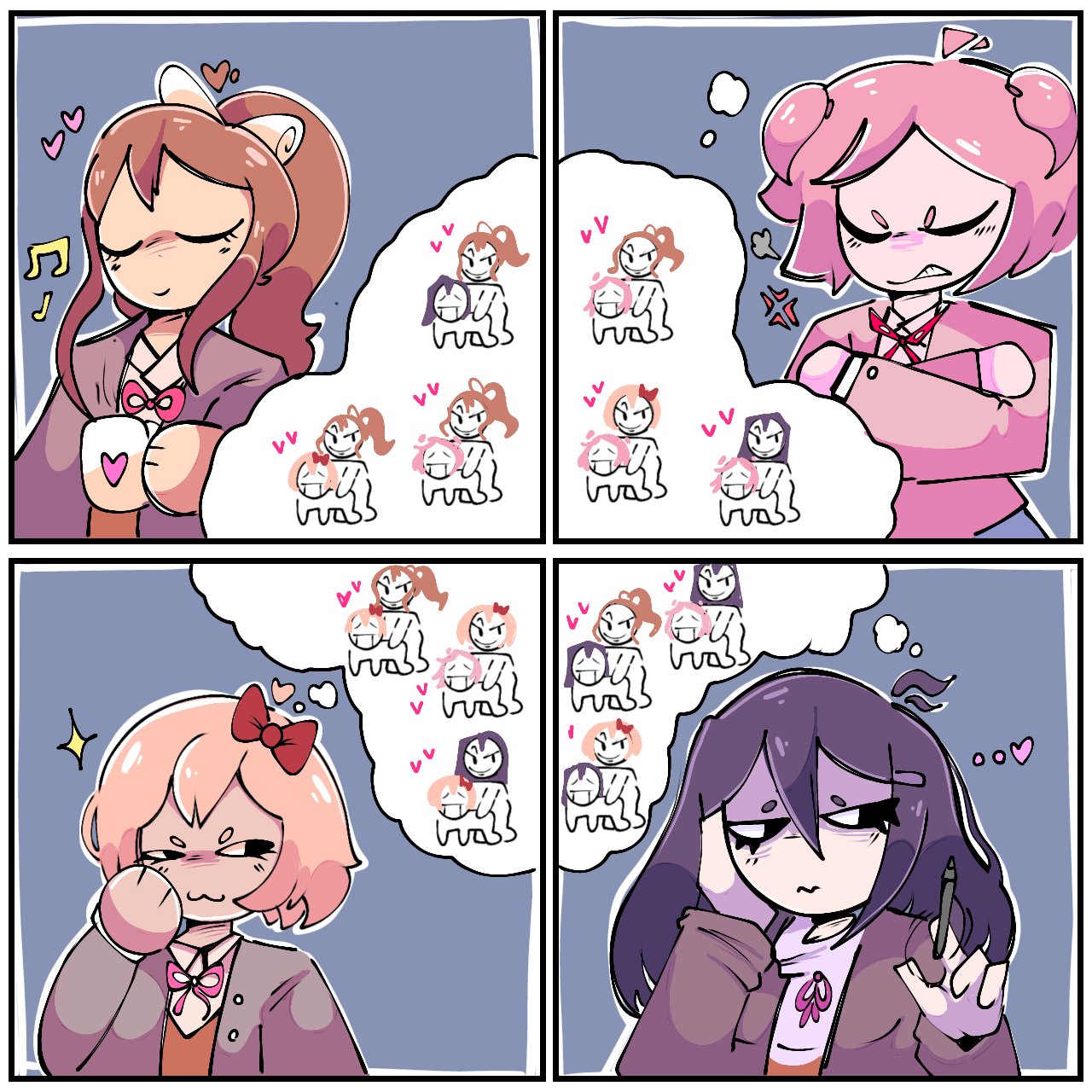 >just 2 girls "in love" [with the male MC]