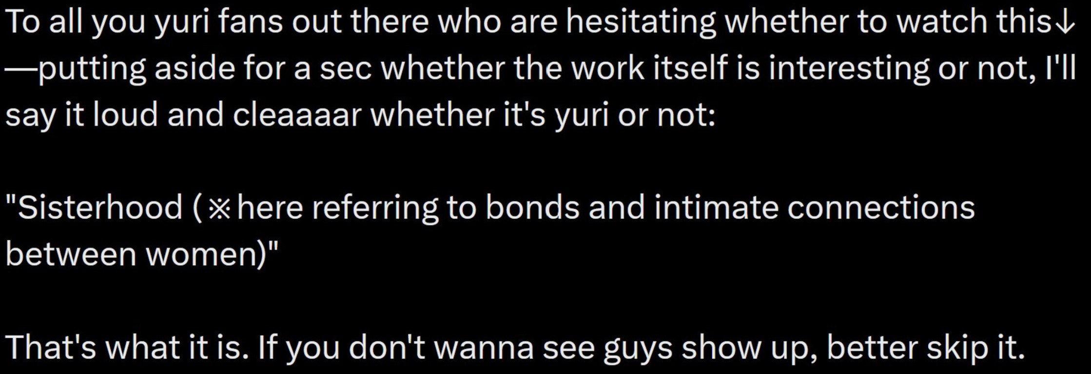 No anon, could be the greatest work ever made, it still wouldn't be yuri.