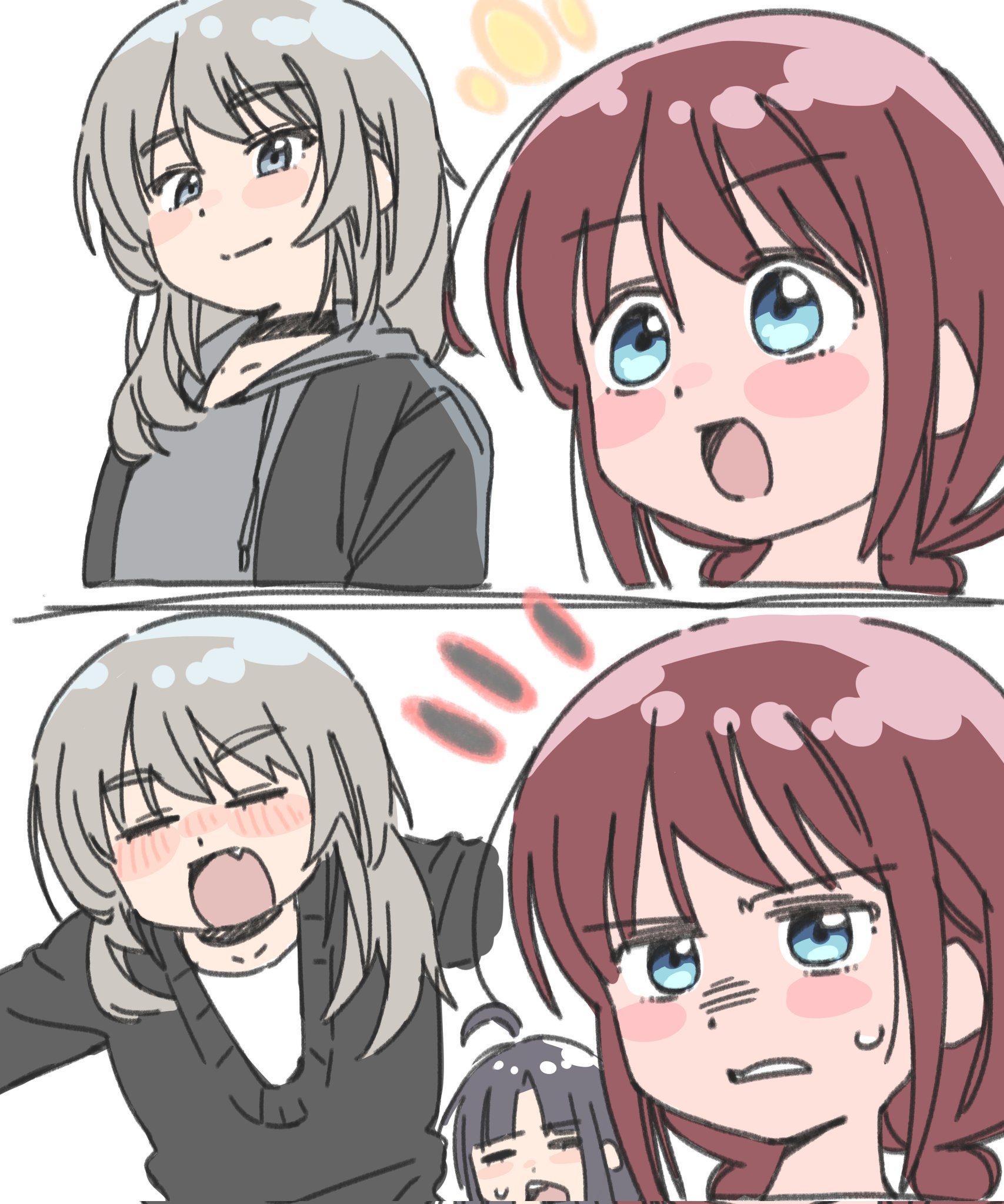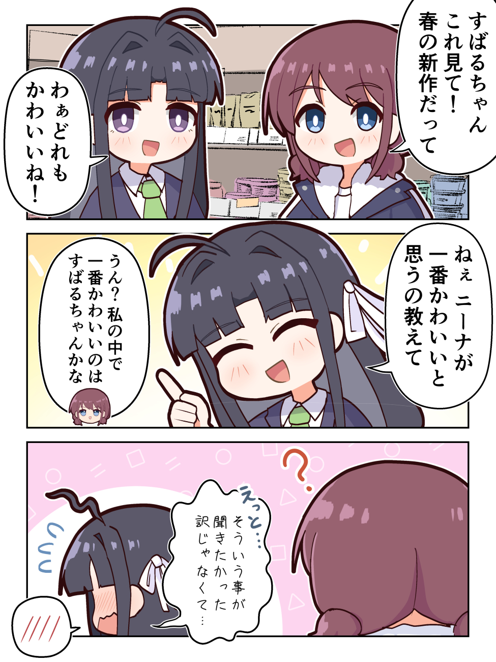 >>4541004I like the new girlsI feel like the big pairings are gonna be Shion (cat/bass) x Rindo (drummer), Ayame (guitar) x Kaede (vocal), Nazuna (keyboard) 3rd wheeling