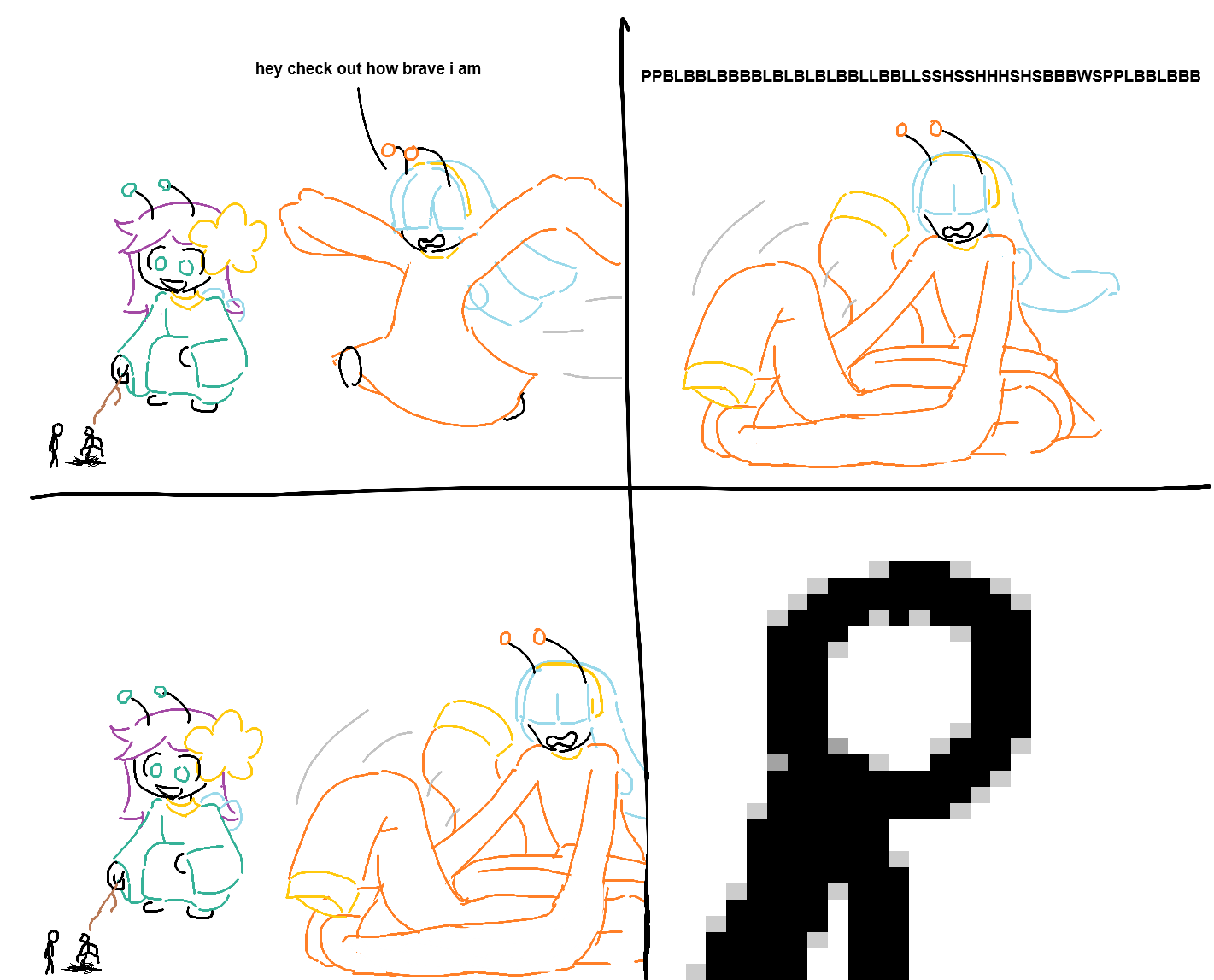 >>736280373I kinda think top left should be "hey check out how hard i can brave".