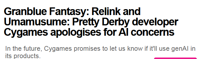 >>731016103barely, the main story ended in with multiverse bullshit and they announced they were going to start using AIif they killed off gbf they'd lose like 50% of their income, but they've also mishandled gbf and killed 90% of the playerbase
