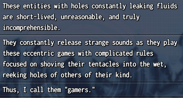 >>736298927I mean, what even would be 4chan humor? Modern 4chud sucks and the oldfarts wouldn't be around to know of a game being made for 4channers anyway.At best, the game's dialogue being unfiltered in what it wants to say is something I feel only 4chan would tolerate these days. Which is fine by me, don't need the softies from around the world to whine and cry at me that my game is too mean to them.