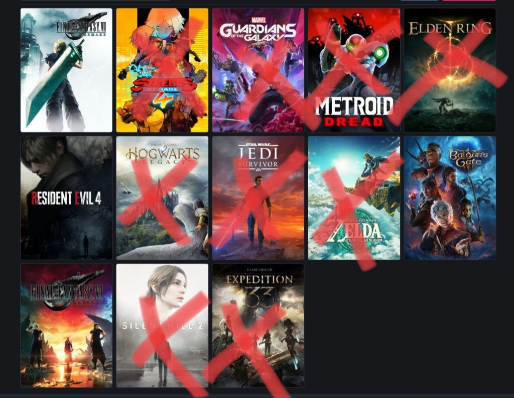 Red X's means the games are utter molten shit