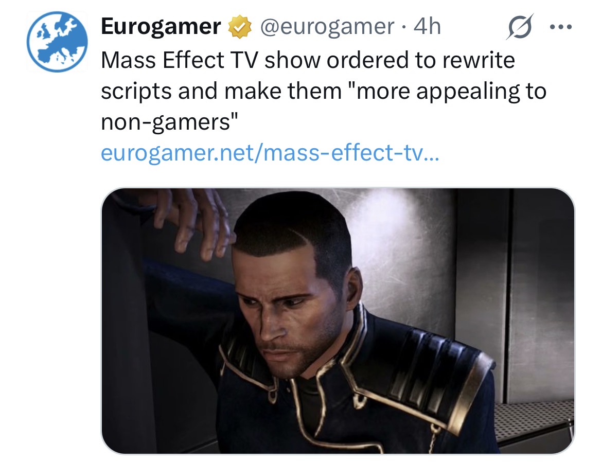 >>736379782The annoying thing is trying to find info on the series really quick, but it sounds like this is a Fallout style post series thing where they're basically going to be writing the canon to set up for ME4 but not be using the main cast as the focus, focusing on new folks. Which, yes, is just reusing Fallout's ideas because it's largely the Fallout team working on this. My only guess is that it was written like a fanfic by folks that know the games so it was hooked into trying to be the follow-up to ME3 Bioware's avoided for over a decade, and some executive looked at this and went, "None of this makes any sense to people who don't care for the series."Which mind you, worked surprisingly well for Fallout, but mass appeal executives that want all the money hate that idea.