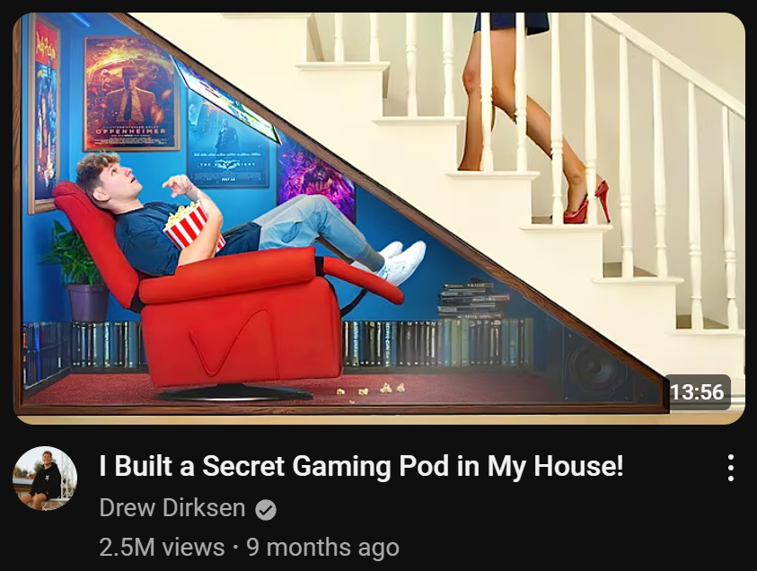 >dont have house>dont have stairs>dont have secret gaming pod under my stairs in my housewhere should I build my secret gaming pod?