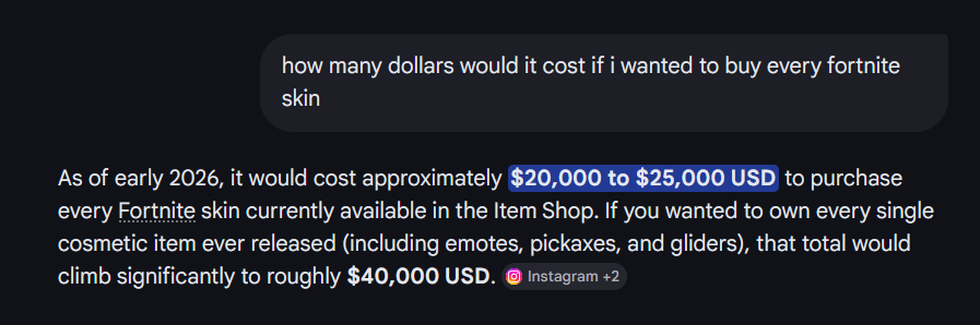 Just as a curiosity, how many burger rubles would it cost to acquire all skins?Me no play fartnite so no idea how they are sold or the average price or if they even are all the same price.