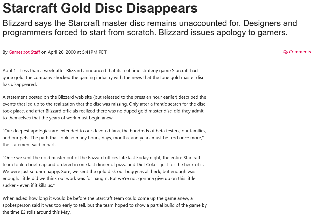 >>729891041and here's the original new article about the disk being lost in 2000. whatever happened to it in the 17 years before it reappeared in some redditor's hands was a complete mystery to them.