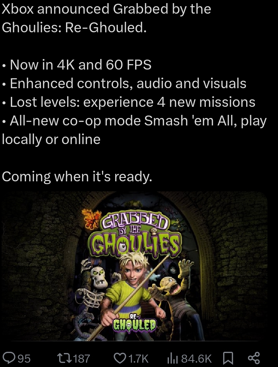 Happy Halloween everyanon. I hope you're eating lots of turkey and figgy pudding.What games are you playing this spooky season?