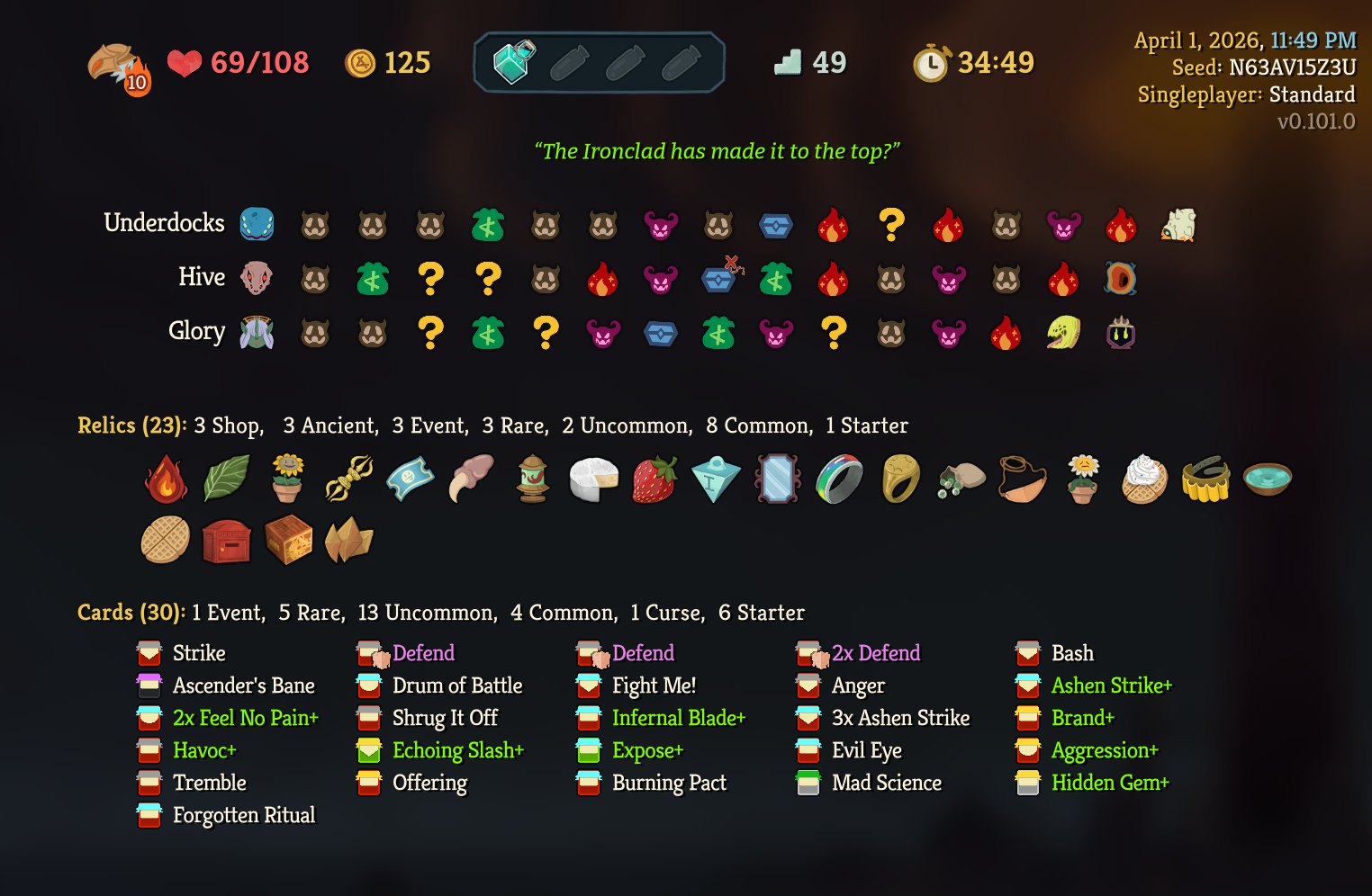 I transformed a strike into drums of battle floor 1 and feared the run was already lost. Thank god for the early feel no pain and ashen strike.
