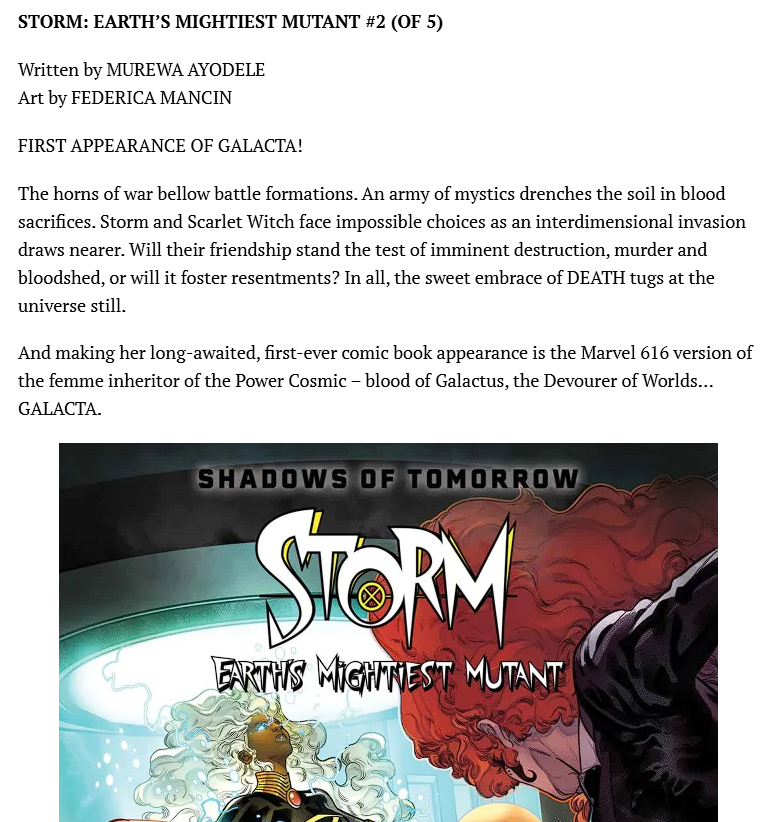 >Galacta confirmed for Earth 616You WILL be buying her first official 616 canon appearance comic, right?