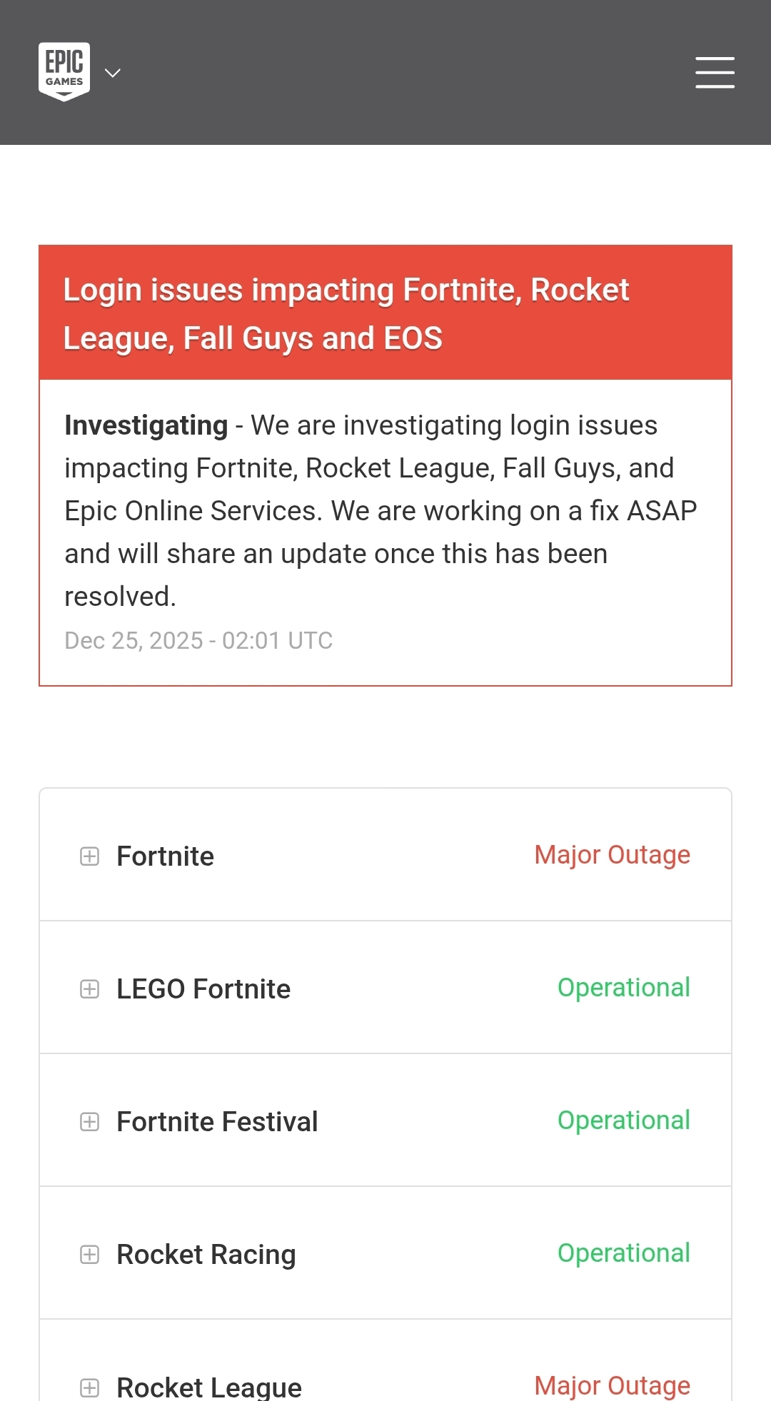 Yep it's Epic's fault.