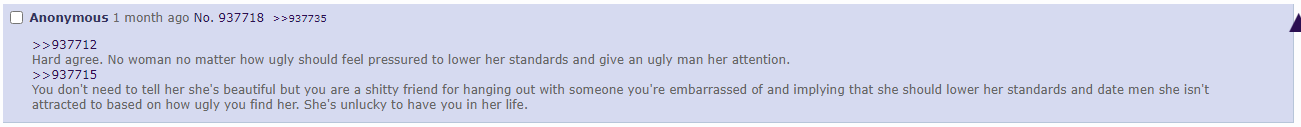 >>729113973I've been in crystal cafe and lolcow farm too and 90% of their posts are shitting on moids and scrotes.If someone spots a woman shitting on a fellow woman they'll defend her and shit on moids again lol.Women do NOT hate each other as often as you think, silly anon.