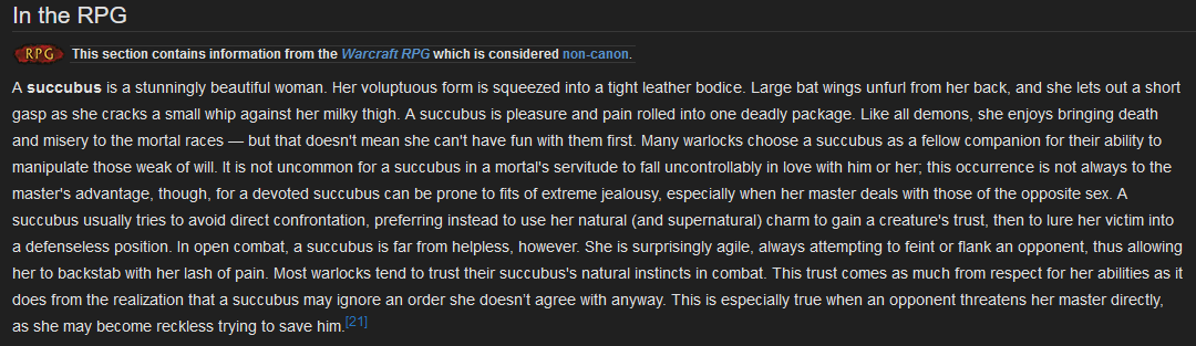 >>730719846Succubus falling in love with mortals has been a thing since vanilla, there's that whole quest in Black Rock Mountain where you help the succubus in a tavern get with the dwarf she's in love with