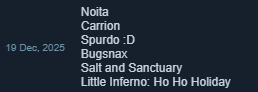 I got most of the games I wanted via trades on Lestrades and bundles, this is what I couldn't get that way.
