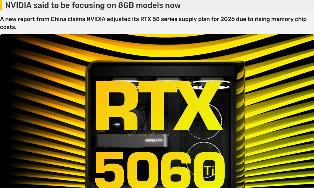 8gb is here to stay hoorayhttps://videocardz.com/newz/nvidia-reportedly-shifts-rtx-50-supply-toward-rtx-5060-and-5060-ti-8gb-in-2026