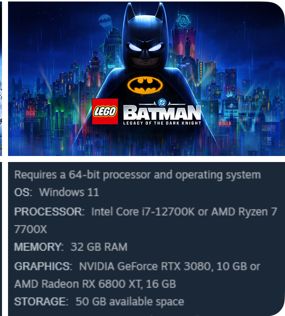 >min spec is a 2070 and REQUIRED SSD>for a LEGO GAME>FOR SEVENTY (70) FUCKING DOLLARSlego harley quinn better jump out of my monitor and give me the best blowjob of my fucking life while lego the joker tongues my anus for that shit to be worth that much money and specs