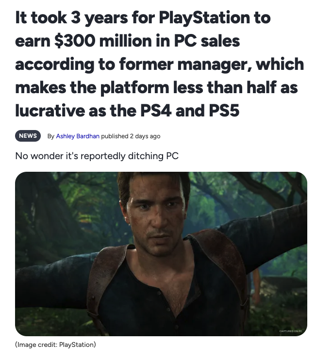 >story driven aaa movie games>Release then pc 3to10 years after their inital release>WTF WHY DON'T THEY CARE ?!release more games faggot, not just the modern aaa slop, give us bloodborn, gravity rush, LBA, grand turismo, even some ps3 thing like infamous