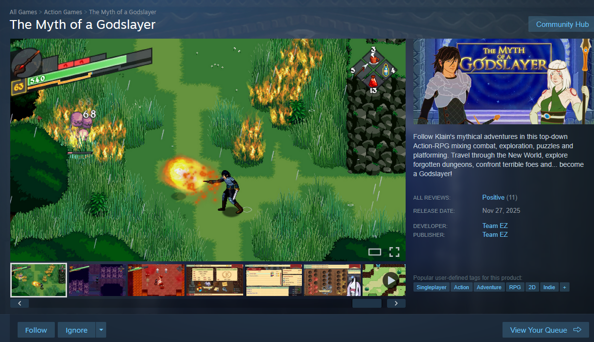 This Zelda-like with derpy dialogue portraits has really good combat and level design.https://store.steampowered.com/app/3817260/The_Myth_of_a_Godslayer/