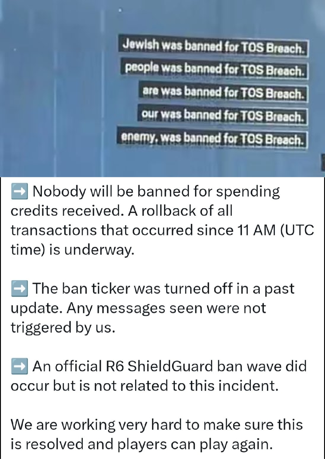 >>729486697This hacker is likely just an angry R6 player.He's completely disillusioned with Ubisoft—the game's environment is a total mess now. It's practically dying.So he decided to retaliate against Ubisoft and ruin the game.He even unbaned all the cheaters who had been banned over the past decade.