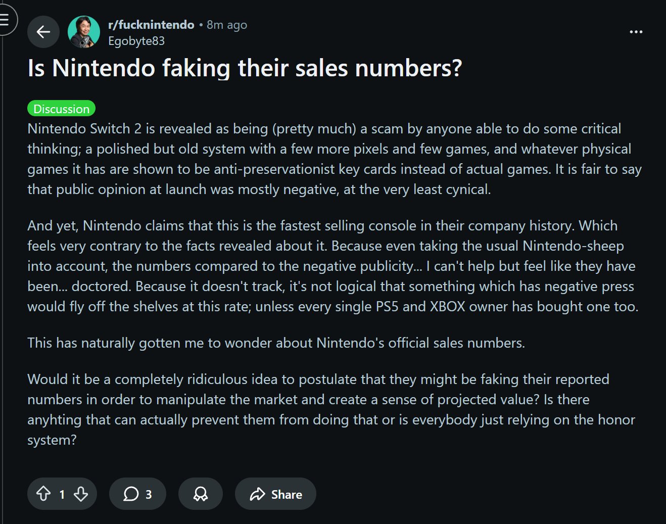 >>724962282That's good for you bro. Normally I get pissed at meteoroid fans because they're entitled piece of shit bitchmoaners who cry and beg every company to make every game as outdated and unfun as this genre but you seem to actually be enjoying something. And you're not trying to tear down my fun. You're not trying to gaslight Nintendo into thinking fans of intrinsic fun games like botw don't exist. I appreciate that.Enjoy your game bro. And never change.