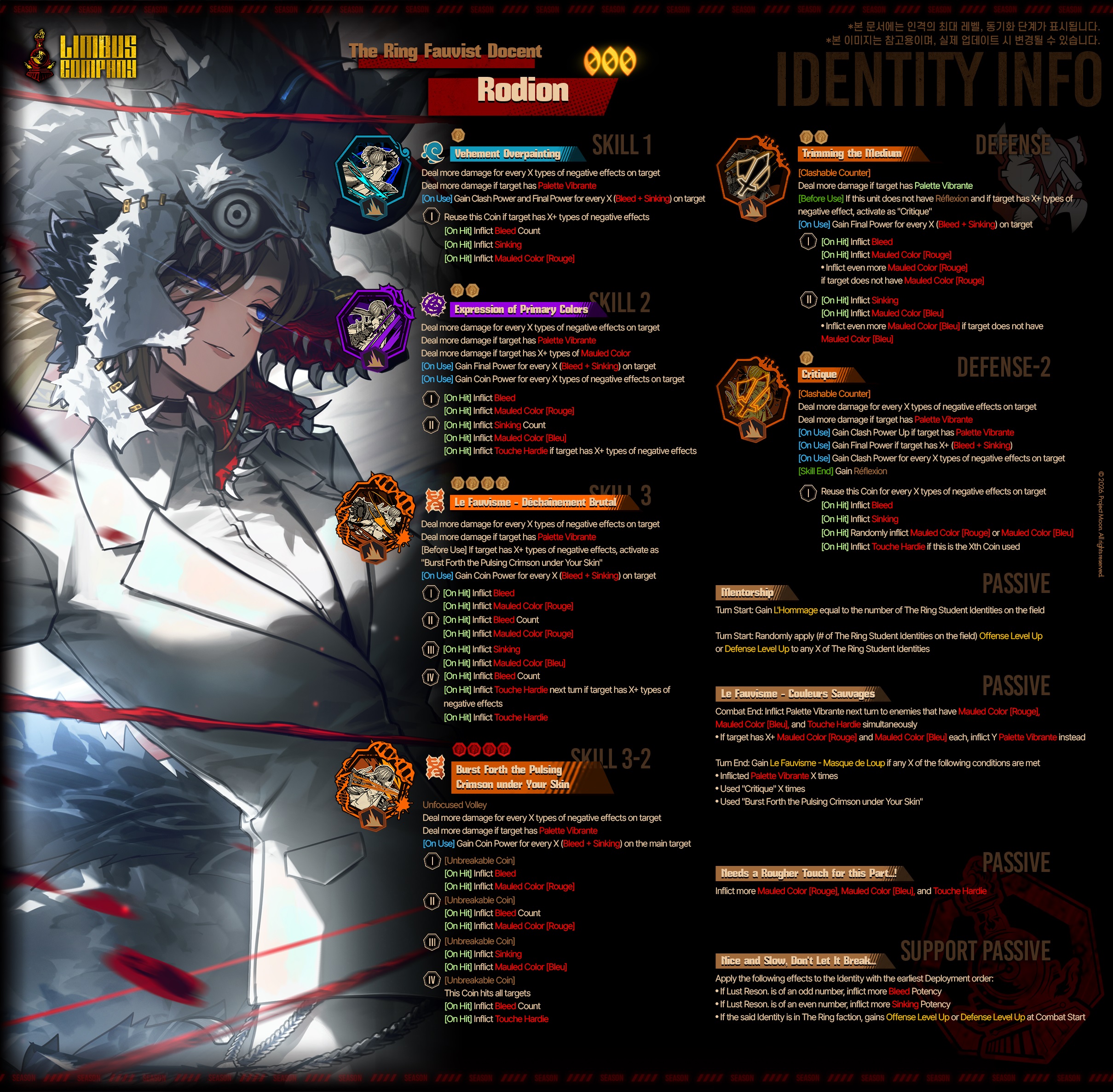 limbus update info's out for the new rodion and meursault, and for the new event. nothing super interesting in the event notes, other than the fact that the extra hard moss mode thing the director mentioned will be coming next week, so it'll be interesting to see what they do with that. patch notes for the week have some ego gift adjustments, nothing too crazy, but the manor music box seems less shit. new ring units are bleed/sinking, interestinghttps://store.steampowered.com/news/app/1973530/view/491595988298895782https://store.steampowered.com/news/app/1973530/view/491595988298895789
