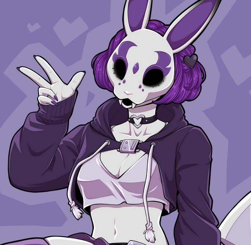 What are some recent games with short purple haired goth girls?Like Neon Violet, from the game Neon White.