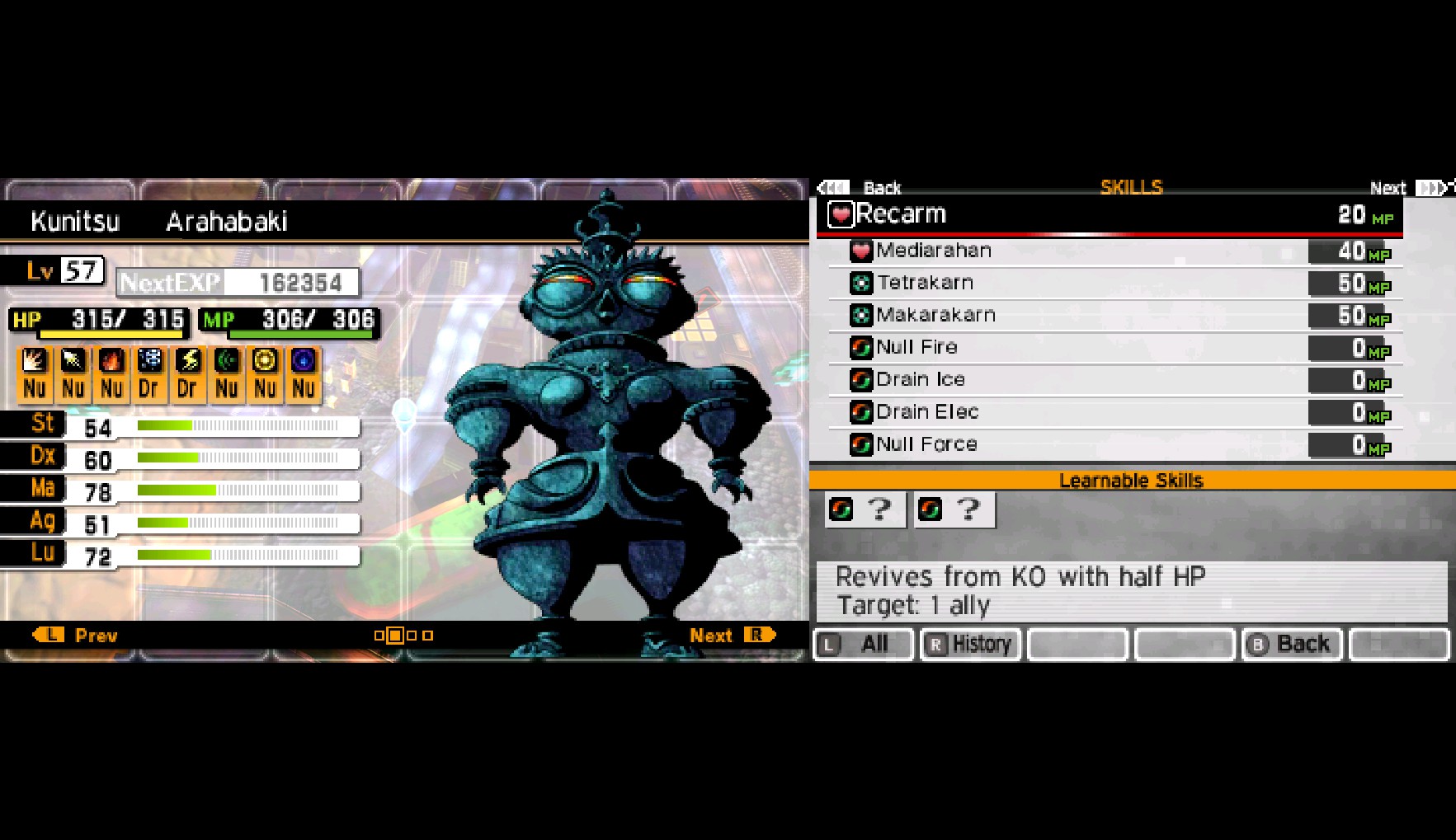 >>731088781Yeah you're overlevelled. I finished my first run of Vengeance at 72 which is underlevelled but at 80 you should be fine for the final boss.Not that it matters. What matters more is you realized you have fusion autism, which is great. I also love tweaking demon builds and I've gotten hundreds of hours out of the series.Consider trying NG+ in Vengeance. It has a great system where you can choose how much you want to carry over and there are multiple endings. There's also a Randomizer if you want to spice things up.From there you could play SMTIV/IVA cause it's pretty much the same system or if you wanted to absolutely crush a game with fusion you could try one of the Persona games. The world is your oyster. Atlus has been making the same kind of game for years and if you like it you're in good hands.>>731091478>I fucking love her ability.It is indeed a good ability, but it's basically a baby version of the best Omagatoki skill in the game.https://megamitensei.fandom.com/wiki/Omagatoki:_Strategize