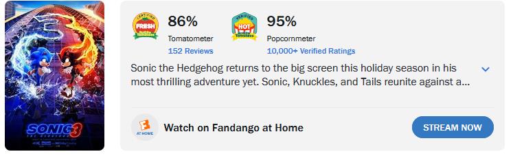 Sonic is the only video game franchise that delivers CRITICALLY ACCLAIMED(by both critics and fans) film adaptations that blend real cinematic value with what fans want. All the other franchises just create slop to make money without caring about film quality. I wonder how Sonic manages it.