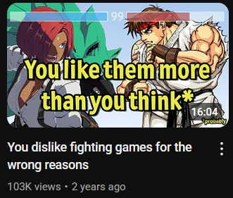 >You like them more than you thinkFighting game niggas have to gaslight people into liking their shitty genre lmao