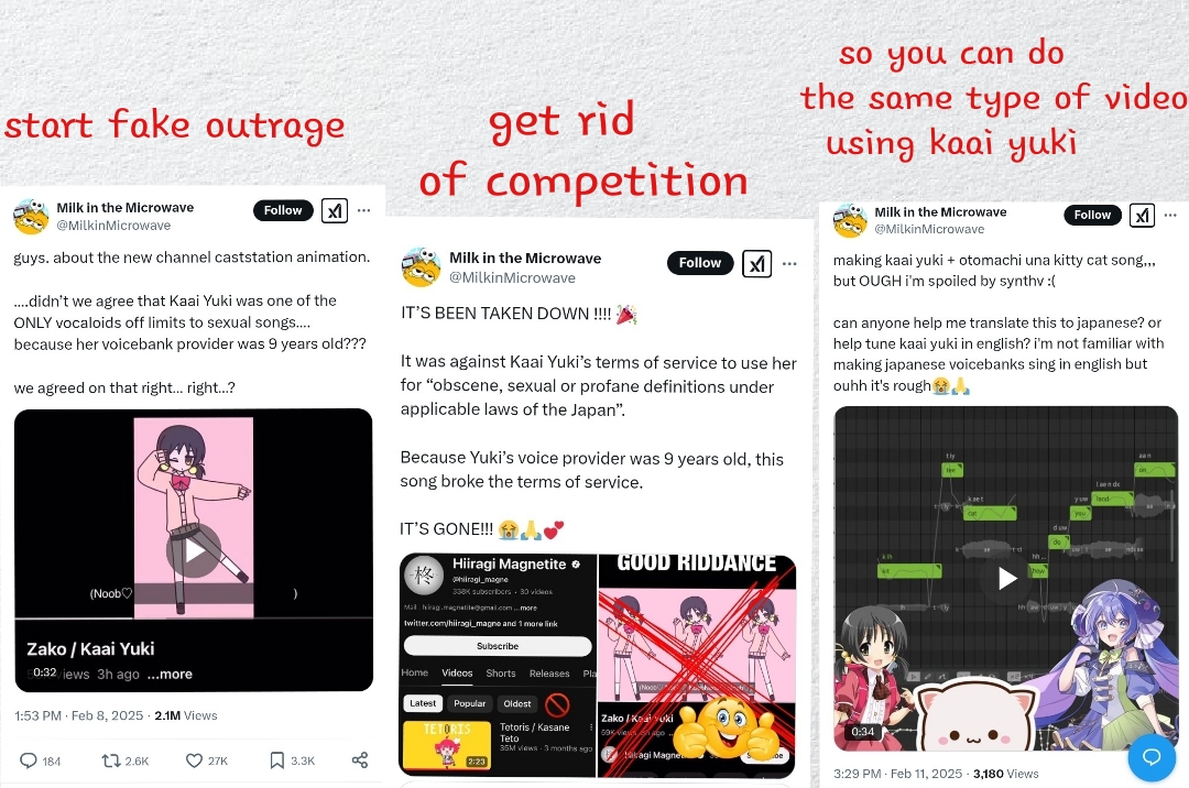 >>723002132Because they're easily manipulated sheep, addicted to virtue signaling.>>723007183No. It's because the song has lewd double entendres and Kaai's voicebox was made by an actual 3dpd loli. This was all the ammunition pic related needed to assassinate it, so it wouldn't compete. Because as we all know, listening to sound is literal rape.