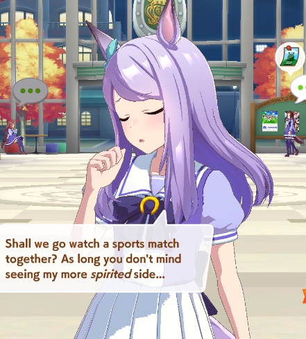 >>723018131>Aoharu Hai was once a traditional team competition at Tracen Academy. However, the tides of time have not been kind to this event, as it hasn't been held in a long time...>At least until now. At the request of the students, the Aoharu Hai is to be revived, and Uma Musume who were once rivals will join hands in this exciting competition!>At the same time, Chairman Akikawa has been called away on a long-term business trip overseas. The strict-looking URA executive, Riko Kashimoto, has been appointed as the acting chairman. Dark clouds begin to gather over the Tracen Academy...