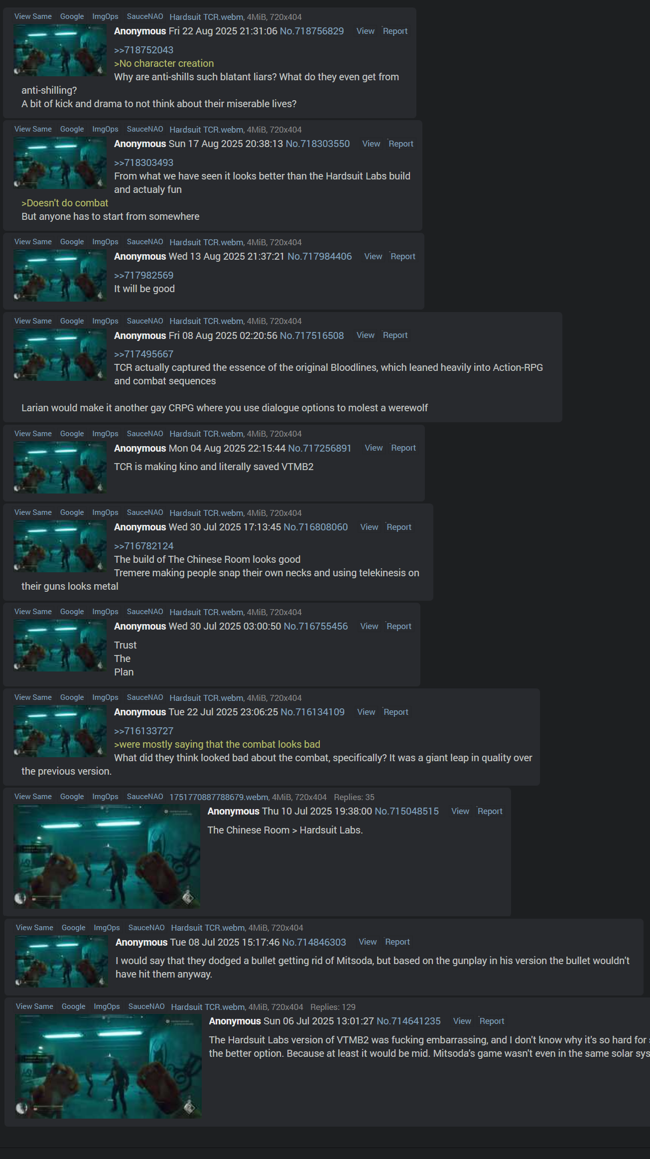 >>723134474>see vtmb2 thread>enter thread>ctrl-f "shill">look at cluster of highlights on scroll bar>laugh>post about it>leave threadlove this schizo leaving free bumps bros, let's see how long until he wakes up