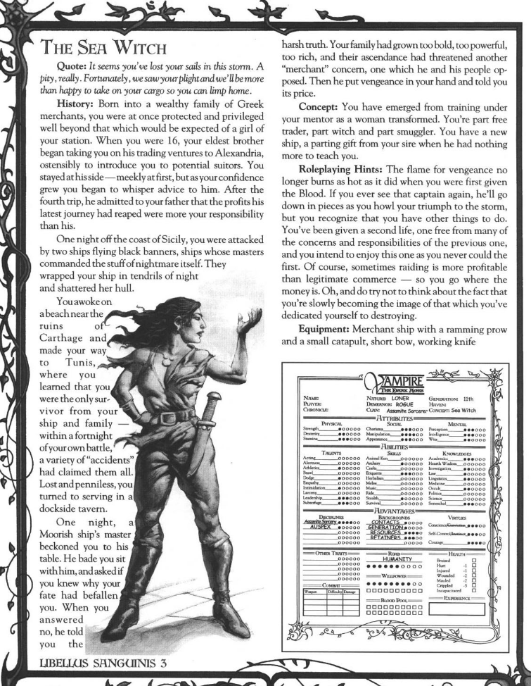 >>723186320Well in v5 supposedly there’s kind of an easy way back if you’re a thin blood oh wait you said old lore. Well, I’m of the mind that the old lore was mostly instructive, much like Red Riding Hood being a cautionary tale. Because it’s constructed as such, there are no innocents. The embraced did something wrong even if it was just submitting. Shouldn’t have worn that dress, etc.