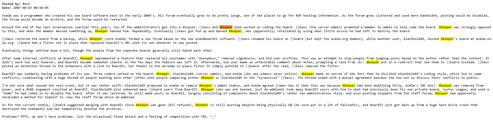 >>723194858>>723195318>xkeeper mentioned 12 pages into the thread (12:30 UTC)>four minutes after the post mentioning him, he shows up in the thread (12:34 UTC)>hexadigital closes the thread only eleven minutes later (12:45 UTC)