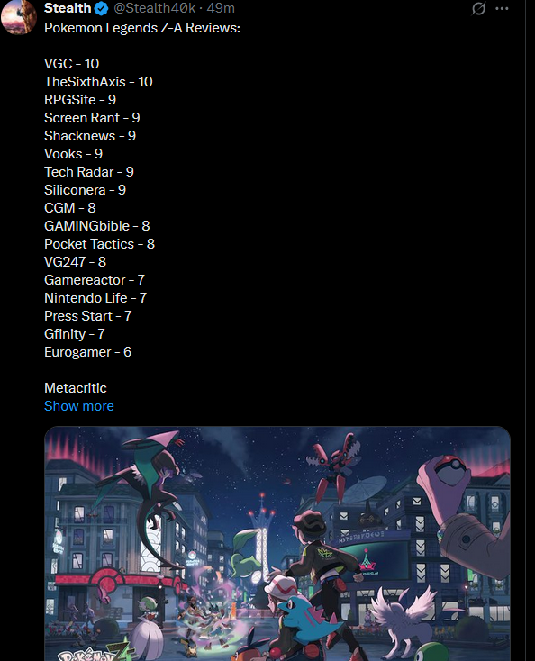 >>723232686I mean those games all suck, so clearly money is irrelevant.I would rather play Legends Arceus than anything listed there so hopefully Z-A is just as good.It might suck too but who knows