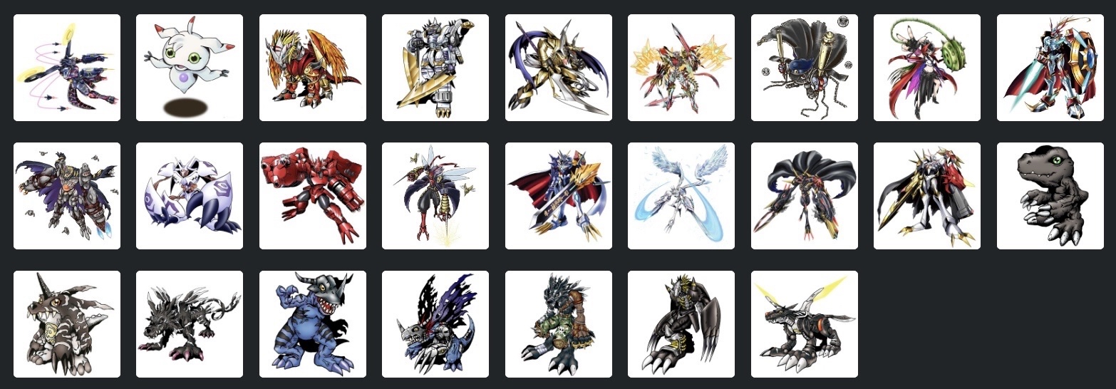 >>723251375Also anyone with the blackmons DLC can check the in game guide for a number, there's 17 digimon spots in between the base game and Black agumon, so the DLC packs are 15-17 mons total
