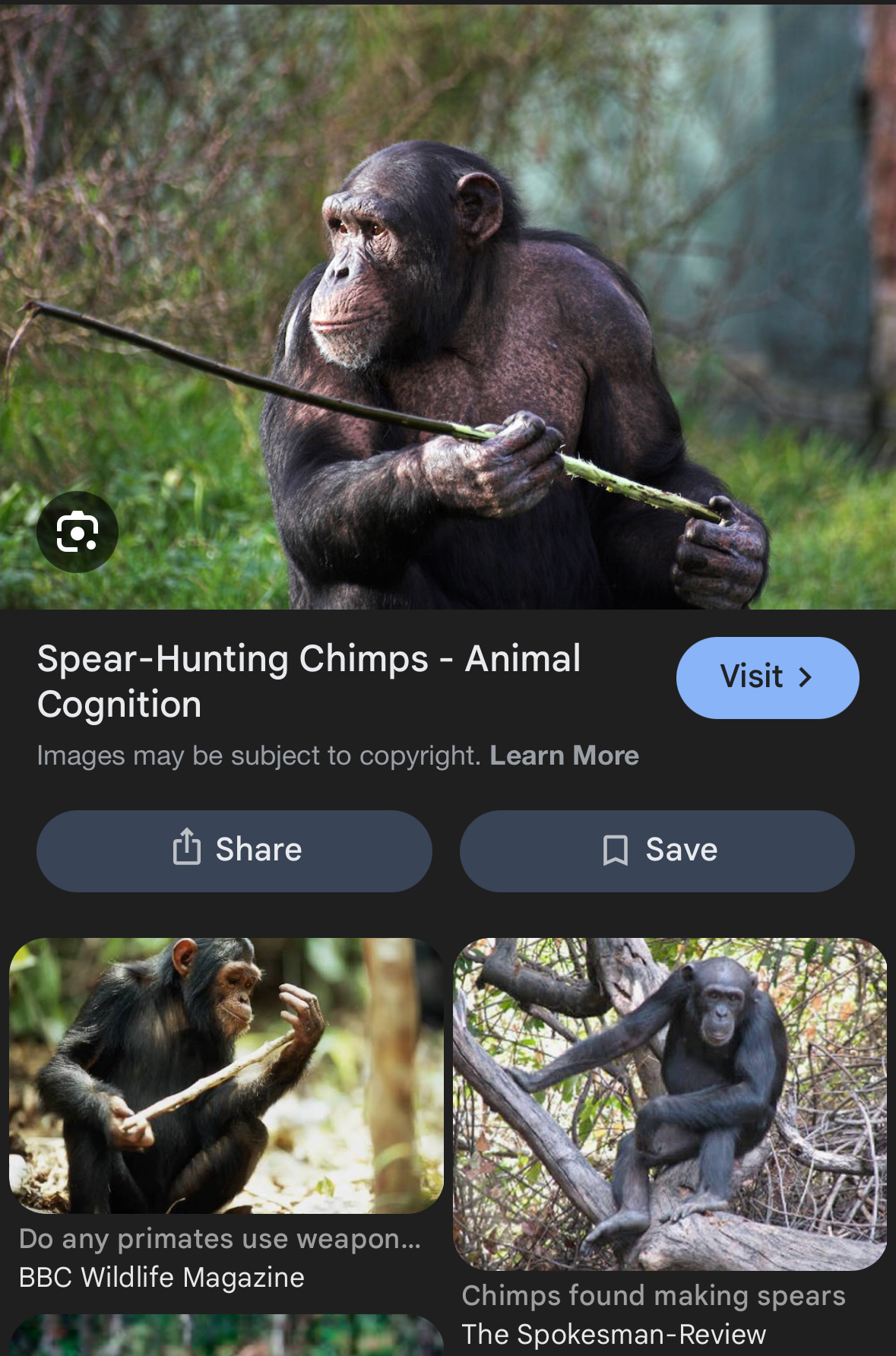 >>723422109>They deserve human status, chimps definitely not thoughWhy not? Chimpanzees have moved onto using weapons to hunt effectively. They wage wars like humans do. They’re starting to use caves to shelter in instead of the trees. They know how to make and use shanks. I’m pretty sure they’re the most intelligent ape overall.The last thing they need to transition out of the stone age at this point is to start hunting larger prey with their spears. At that point they can really start developing.