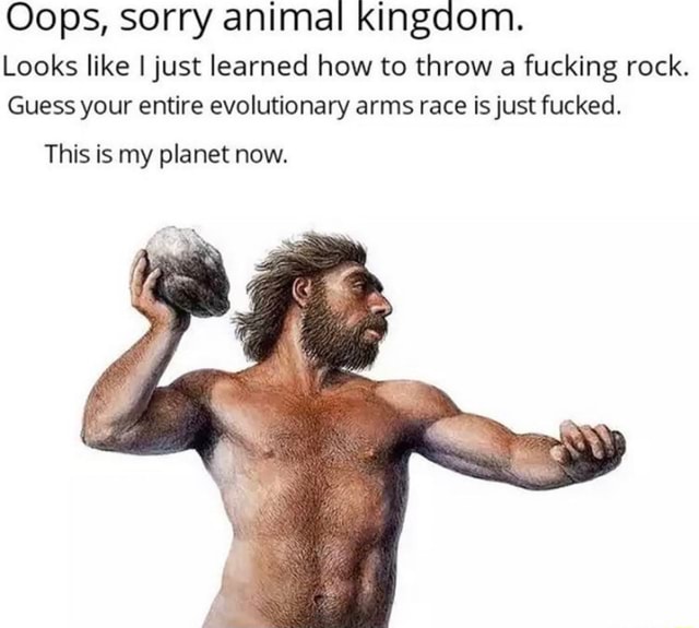 >>723389605Because our muscles are meant for fine movement to use tools. We're much more dexterous when it comes to aiming and throwing something than a lot of animals, if they can even grip something to throw in the first place. We have poorer reflexes than certain animals, thinner skin than most, and just weaker when compared to animals around out weight along with the only good weapon we're equipped with is our teeth for biting. Otherwise you're just bludgeoning things with your feet or fists.