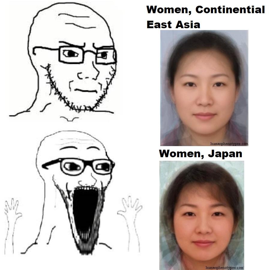 >>723463865nta but while the jomon/yayoi autism is only prevalent among online japanese chuds, a few years ago, uhhh, a way to divide people's facial features into categories seems to have trended in social medialeft to right, top to bottom:>salt face>onions-face(no i'm not making this up lmao)>sauce-face>miso-face>sugar-face>ketchup-face>mayo-face>vinegar-face>olive oil-facethe prefered look among westerners seems to be sauce-face(jomon)