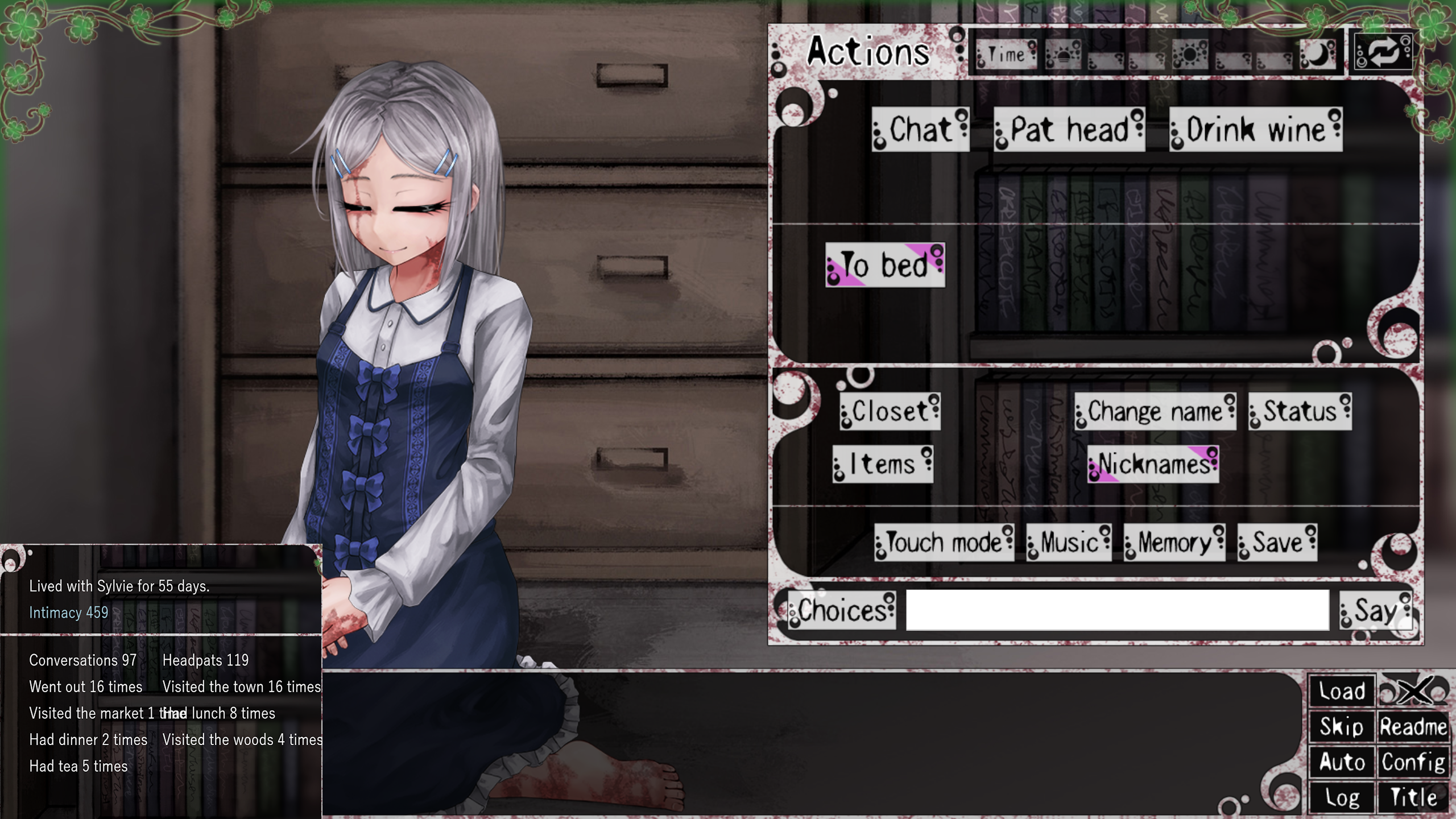 The option to add flowers isn't there and the lust stat doesn't even appear in the status screen until you dick her.