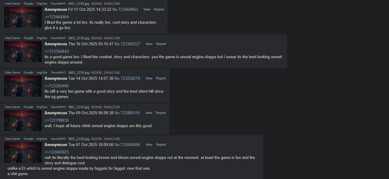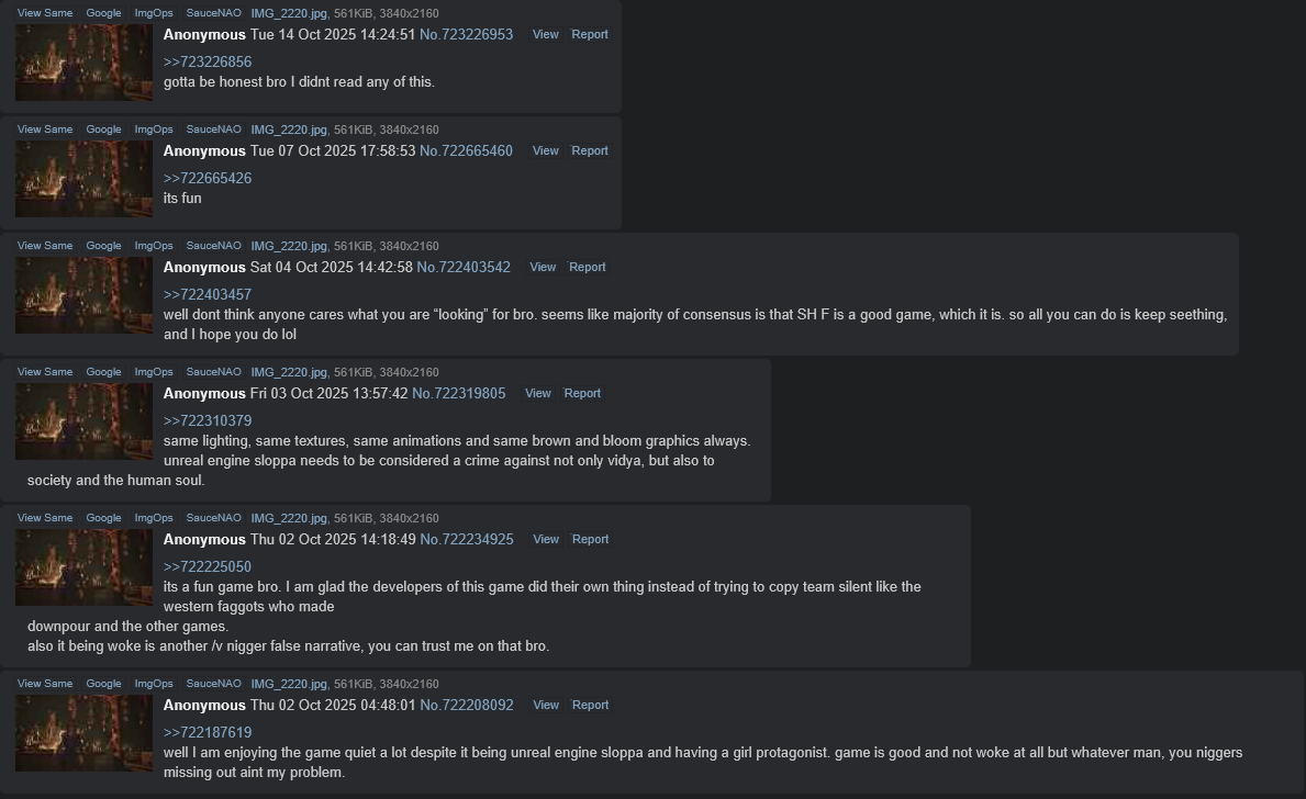 >>723464329but bg3 is the biggest faggot propaganda disguised as a video game ever conceived and as for Silent Hill f its actually a really good game with zero woke shit bro. I recommend you try it out. its a fun and entertaining game bro.