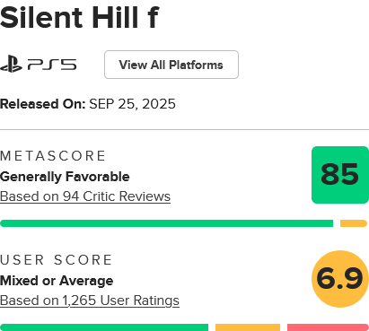 >>723463226I actually love Silent Hill F's narritive structure because peoples opinion of the stroy exposes how much of it they played. For example I can tell you only got the first ending.