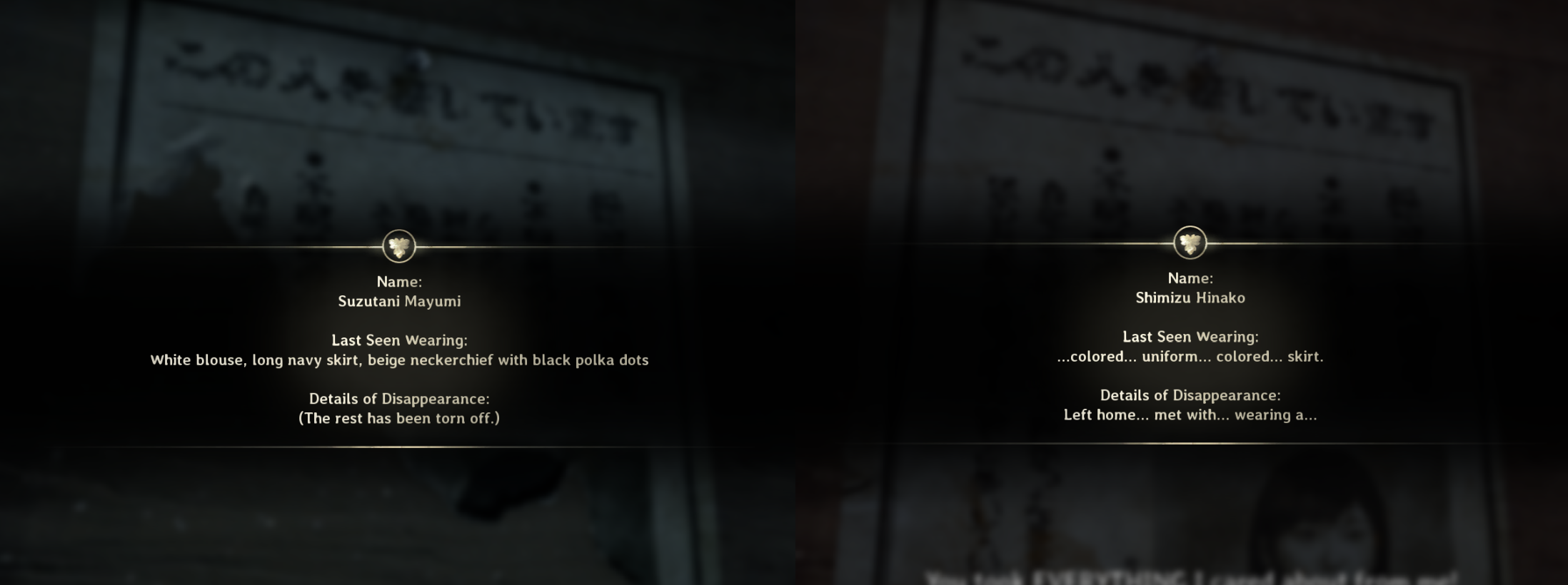 >>723463953The box of eyeballs is meant to be the dead giveaway after you see the tree with eyes in NG+, but you also get notes that explicitly say he's gonna kill other girls in the town, and notes near his house about collecting women. The Dr. Iwai being mentioned is Shu, not his father.