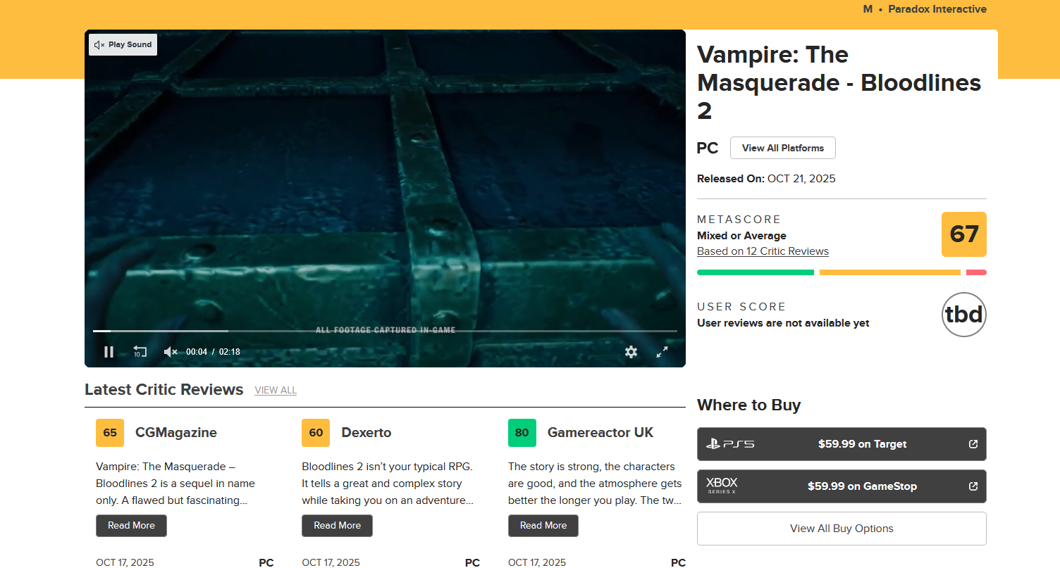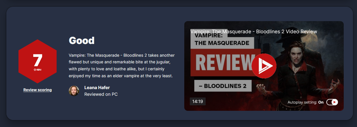 Having a VTM game without Frenzy is crazy & I'm so, so sick of Unreal Engine cut-and-paste metropolises in games that don't let you explore for shit. Other than that it's a serviceable game, not one that I would pay $60 for though