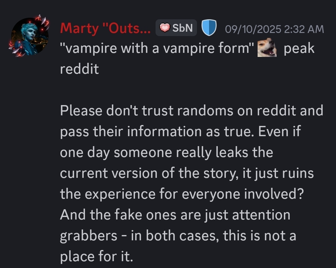 >>723473969The shill just says that about anything. His go to cope when things fail is to just say "w-well its just like VtMB"