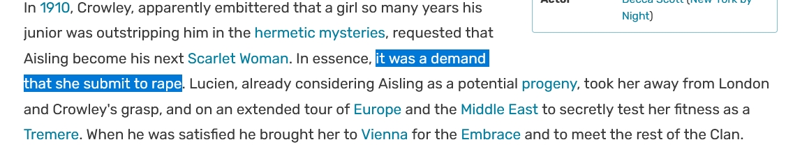 >>723508942It actually is plot relevant that you were the baddest motherfucker around even getting called the "Slayer of Cairo" and everyone knows who you are and what's your deal and you need to get your powers back because surprise some Tzimisce bitch marked you. The only reason why Phyre is an elder despite having to go through the same journey a neonate does is just to have him diablerize Fabien so he can be in your head.